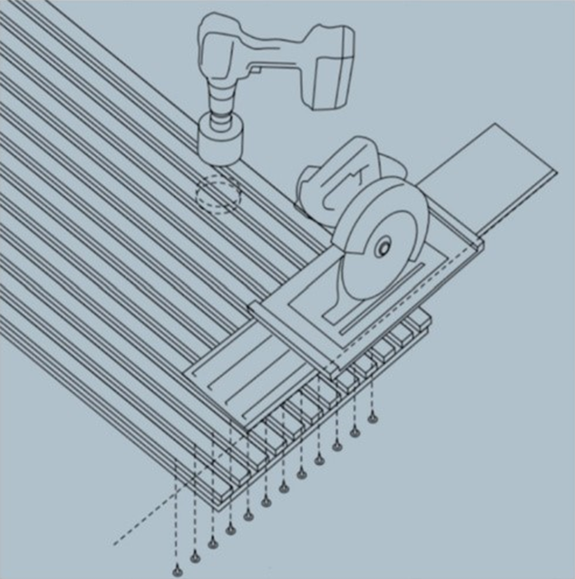 3. Aparafusar os painéis em ripas de madeira: