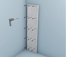 Recomendamos aparafusar ripas de madeira 4-5 cm na parede e depois aparafusar os painéis diretamente nas ripas através do feltro acústico para obter uma absorção sonora ideal.