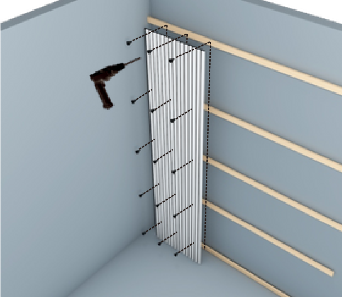 Recomendamos um mínimo de 15 parafusos por painel em intervalos de 9 cm na largura e intervalos de 60 cm no comprimento do painel.